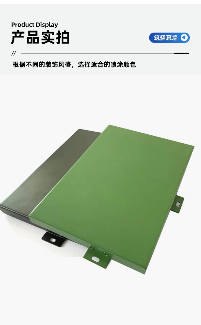 常州筑耀幕墙材料有限公司是一家集生产、销售、服务于一体的 幕墙铝单板 、 氟碳铝单板 和室内金属天花等高端建材制造厂家,主要致力于铝单板,氟碳铝单板,铝单板幕墙, 木纹铝单板 ,仿石材铝单板,镂空铝单板,冲孔铝单板, 外墙铝单板 , 铝单板 吊顶 等生产销售,公司专业化团队具有多年的制造、生产和销售经验,我们秉承专注创新、建筑荣耀的理念,投入引进一流的技术、设备和人才,力争成为有优势的金属幕墙吊顶系统制造商。 公司引进一流的全数控钣金加工设备,采用先进的自动空气稳压循环,超洁净长烘道氟碳喷涂和粉末喷涂自动生产线,选用日本兰氏先进的喷涂系统,公司认真吸收先进科学理论和管理经验,所有生产过程都严格执行ISO9001质量管理体系,实行严格的控制和管理。公司有专业的技术服务人员与完整的市场销售售后服务体系...